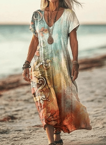 Step into the sunshine with the Claudia Dress — your perfect companion for warm days and breezy evenings. This airy floral piece blends everyday comfort with graceful style. The soft, flowy fabric and flattering silhouette make it easy to wear and love, while the V-neckline and charming print add a touch of elegance to any occasion.